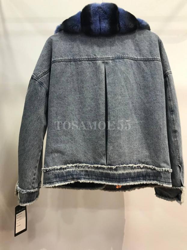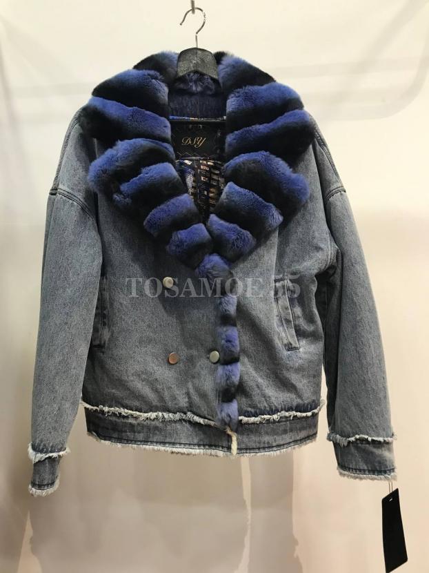 Короткая джинсовая парка с мехом кролика рекс
